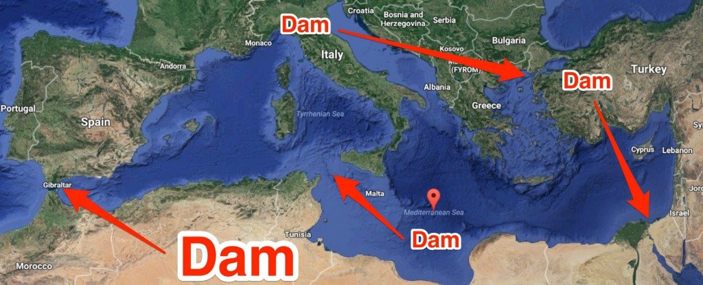 The seabed between Sicily and Italy would become dry land, and a third dam situated between Sicily and Tunisia would simultaneously serve as a bridge allowing for easier access to African resources.