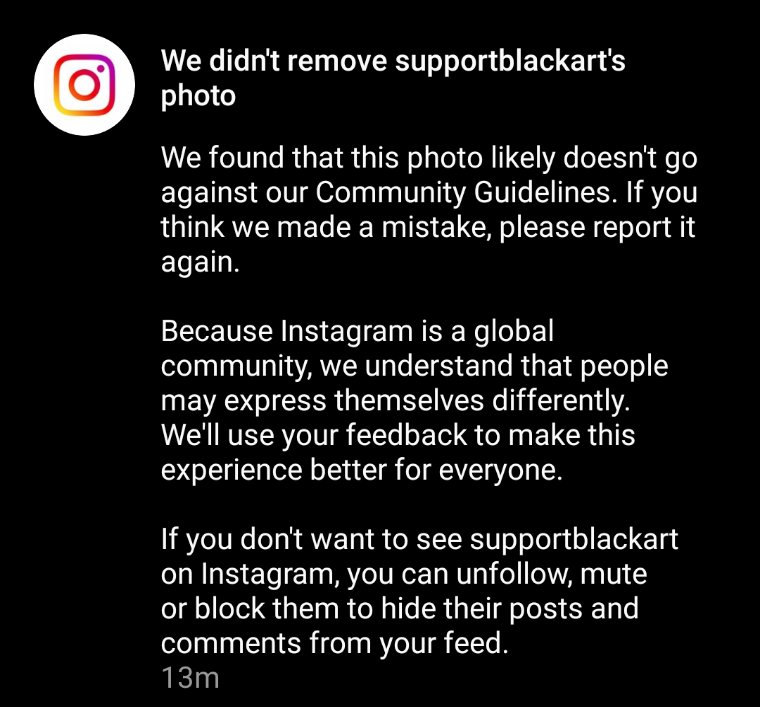 Instagram stance on the piece also garnered a lot of negative feedback, with many arguing that, were the races reversed, the post would receive a vastly different response from those in charge at the social media company.