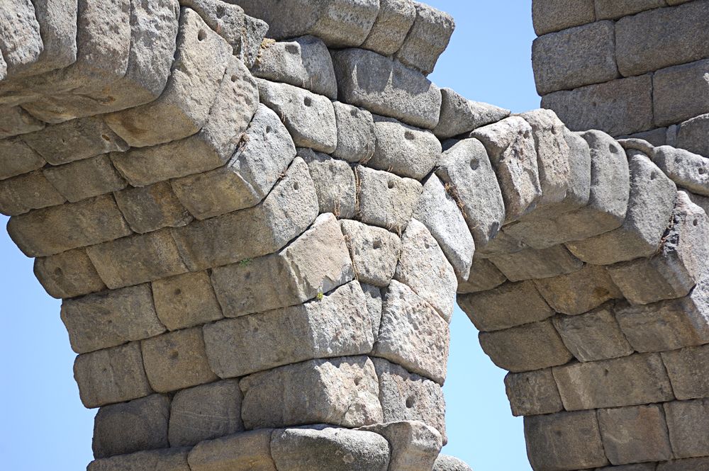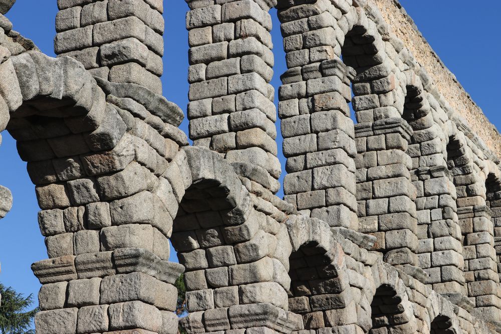 The aqueduct of Segovia is a classic example of Roman water transport architecture—simple in design, yet magnificent to behold, and surprisingly durable. The aqueduct was built in the 1st century AD to convey water from Frío River, 17 km away, to the city, and it has been carrying out this function in one form or another for the past 2,000 years. This is all the more impressive when you realize that this aqueduct was built without a single ounce of mortar.