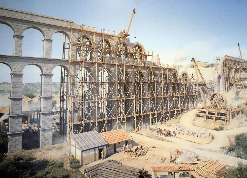 An artist’s rendering of how the aqueduct might have been constructed. Image is from an exhibition at the Museum of Segovia. Photo: Antonio Tanarro