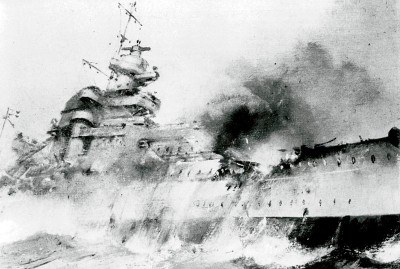 For three hours the Royal Navy pounded broadside after broadside into the crippled battleship. In just 90 minutes an incredible 2,876 heavy calibre shells were fired at the helpless battleship.