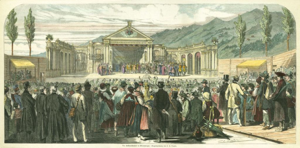 According to legend, an outbreak of bubonic plague devastated Bavaria during the Thirty Years’ War (1618–1648). Bad Kohlgrub was so depopulated that only two married couples remained alive. The village of Oberammergau remained plague-free until 25 September 1633, when a man named Kaspar Schisler returned home after working in the nearby village of Eschenlohe. Over the next 33 days, 81 villagers would die, half of Oberammergau’s population. On 28 October 1633, the villagers vowed that if God spared them from the plague, they would perform a play every 10 years depicting the life and death of Jesus. Nobody died of plague in Oberammergau after that vow, and the villagers kept their word to God by performing the passion play for the first time in 1634.