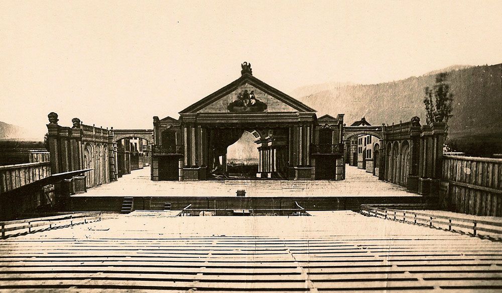 The production involves over 2,000 performers, musicians and stage technicians, all residents of the village. The play comprises spoken dramatic text, musical and choral accompaniment and tableaux vivants, which are scenes from the Old Testament depicted for the audience by motionless actors accompanied by verbal description. These scenes are the basis for the typology, the interrelationship between the Old and New Testaments, of the play.