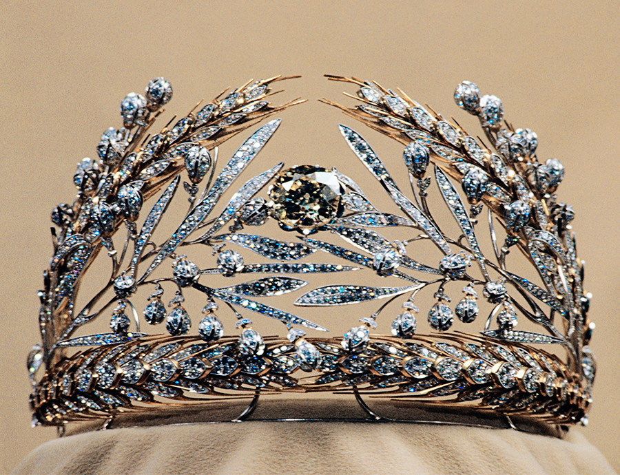 Soviet jewelers made a replica of the diadem in 1980 and called it “Russian Field.” It is also held in the Diamond Fund.