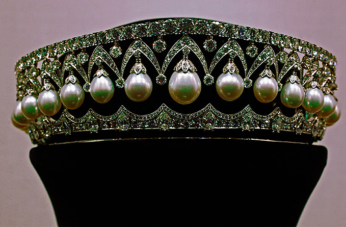 This pearl-drop head ornament was ordered by Nicholas I for his consort Alexandra Feodorovna in 1841. After being auctioned off in 1927, the diadem changed hands among private owners numerous times. Holmes and Co., Britain’s 9th Duke of Marlborough and Imelda Marcos, then first lady of the Philippines, all owned it at one point. At present, the government of the Philippines is the diadem’s most likely owner.