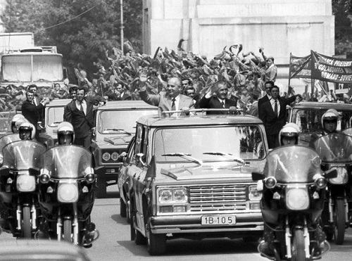 Mikhail Gorbachev moved by the ZIL-4104 (ZIL-115). The number of cars ZIL-115 in each foreign tuple of Gorbachev reached 20 units, which required seven transport aircraft IL-76 for their transfer. In the photo: Mikhail Gorbachev (left) and Nicolae Ceausescu (right) during a visit to Bucharest, 1987.