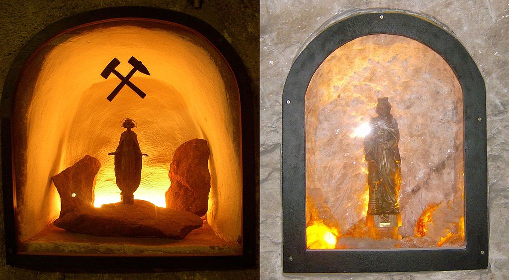 Barbara celebrations as well as devotions on December 4th have become long-standing customs, particularly in mining regions. On this day the miners commemorate their patron saint, St. Barbara. Therefore, each year on Dec. 4th there is a quiet, solemn atmosphere in front of the “Erbstollen”of Copper Plate (drainage tunnels of copper plate), and one is grateful for the accident-free mining year and prays once again for protection.