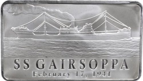 In memory of the Gairsoppa disaster, collectable bullions and coins were made from raised silver in Canada and Australia. This marketing campaign itself raised a fortune not quite enough to rival that of Bill Gates. Alas, there wasn’t quite enough to place on the shoreline reached by its sole survivor a small wooden cross. Source