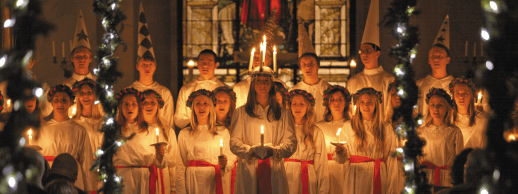 While St.Lucia processions and parades are held in the mornings, churches and universities across Norway offer St.Lucia concerts in the evening. Visitors can attend the Lucia concert in the University of Oslo or head to a small town for a more authentic celebration. The town of Drobak near Oslo has really atmospheric annual St.Lucia parades.