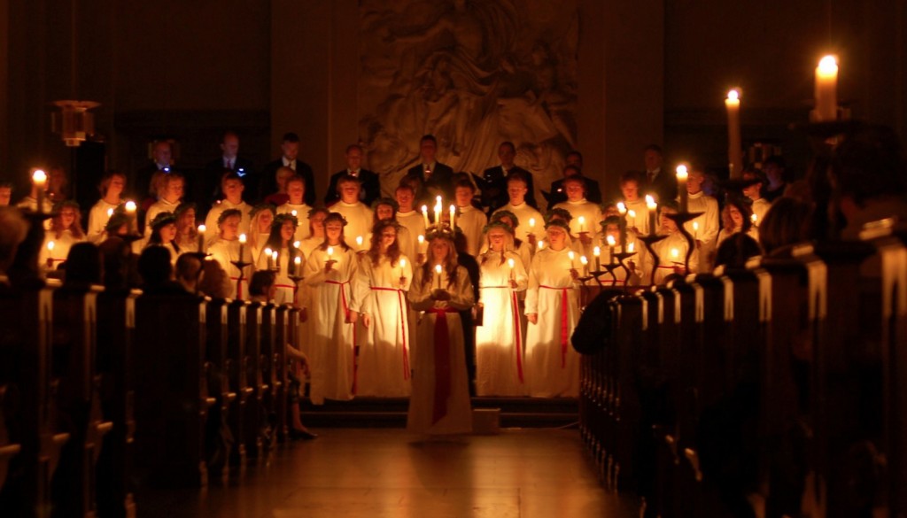 Saint Lucy’s Day, also called the Feast of Saint Lucy, is a Christian feast day observed on 13 December. The observance commemorates Lucia of Syracuse, an early-4th-century virgin martyr under the Diocletianic Persecution,who according to legend brought food and aid to Christians hiding in the Roman catacombs, wearing a candle lit wreath on her head to light her way and leave her hands free to carry as much food as possible. Her feast day, which coincided with the shortest day of the year prior to calendar reforms, is widely celebrated as a festival of light. Falling within the Advent season, Saint Lucy’s Day is viewed as a precursor of Christmastide, pointing to the arrival of the Light of Christ in the calendar on Christmas Day.