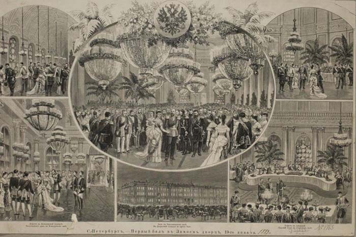 The celebration of the Nativity of Christ and the New Year was accompanied by a series of balls, masquerades and feasts. Since the time of Empress Catherine II, it has been customary for a New Year’s dinner to be arranged in a crystal tent erected in the hall of the court theater. Following this tradition, the royal family dined in a luminous tent made of patterned glass on the first day of the New Year in the 19th century. Source