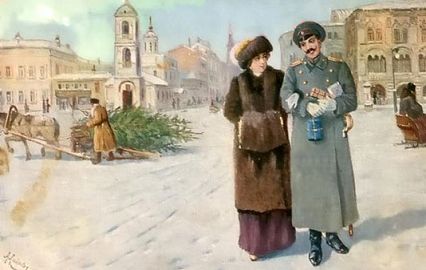 In 1866, trying hard to be like Western Europeans, Moscow nobles decorated huge and lush Christmas trees with expensive German toys, handmade sweets and lanterns. At endless balls, theatrical performances, home dinners, tables were laden with food and drinks. Walking in troikas in the moonlight, balls in the building of the Noble Assembly – all these secular entertainments were mixed with old Christmas rituals: fortune-telling, carols, Epiphany bathing in the Moscow River in order to wash away sins, etc.