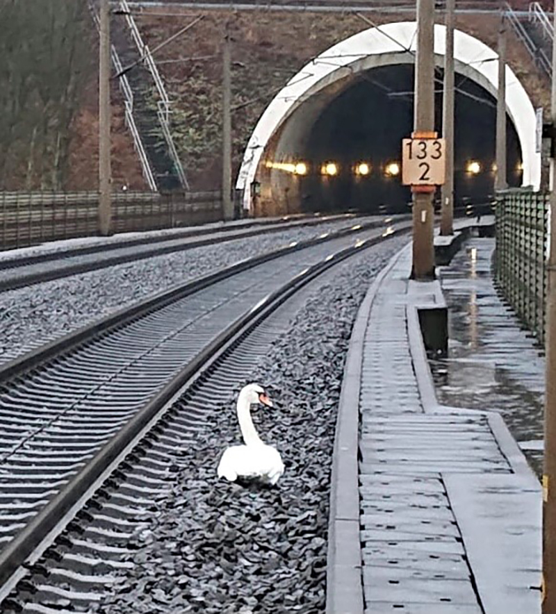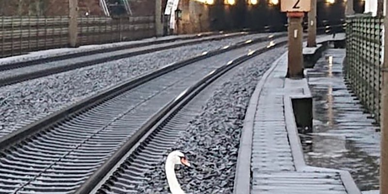 Two swans wandered into the area of the high-speed rail, and one of the birds died. The surviving bird did not want to leave the scene of the incident, and repeated attempts to lure it out of the way did not bring success either.