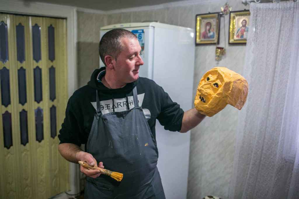 Ivan Tarnovytskyi lives on a hill overlooking the main village street. He has been creating masks for Malanka for over 15 years. He says he fell in love with this craft after the first glance because he loves traditions.