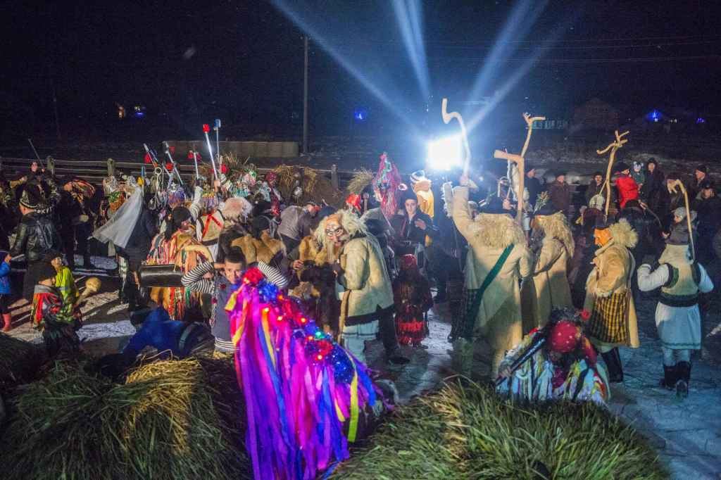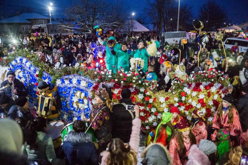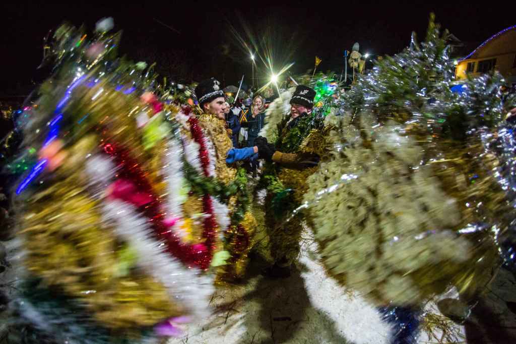 The biggest and the most famous Malanka in Bukovyna takes place in the village of Krasnoilsk, on the border with Romania. On the 13th and 14th of January, thousands of people in creative costumes come to the streets of their village with performances, songs, and dances, celebrating the Old New Year (New Year’s Eve according to the Julian calendar, still in use by the Orthodox Church after the calendar change in 1918). The Malanka tradition was preserved here despite the Soviet authorities ban of this celebration, and today thousands of tourists, not just from Ukraine but from all over the world, come to experience this tradition.