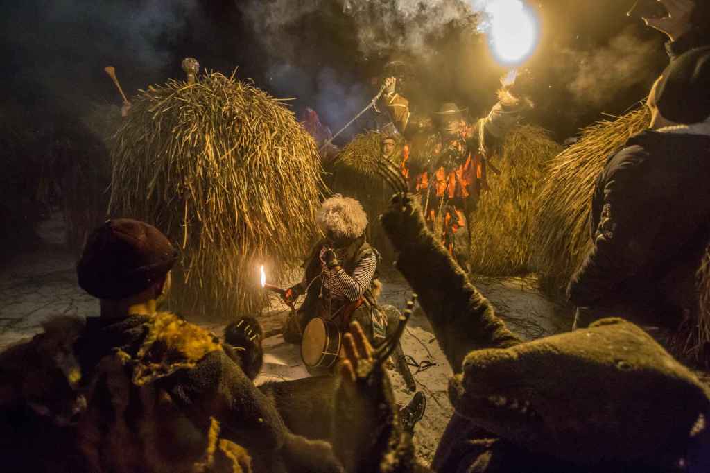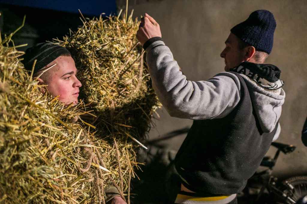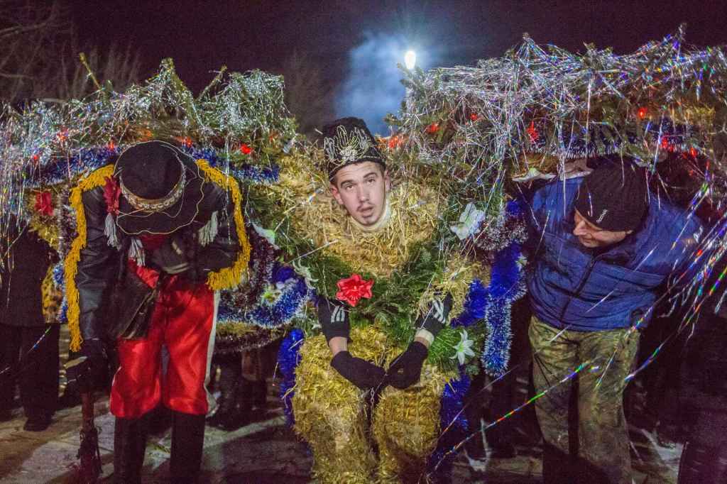 In the afternoon, the first costumed people on horses, dressed in furs and traditional costumes, show up on the roads. But it’s only a prelude — the teams are getting together at six o’clock in the evening in different corners of the village Krasnoilsk. The Bears in straw pants have a shot of horilka (Ukrainian strong alcoholic drink), excitedly talking with each other.