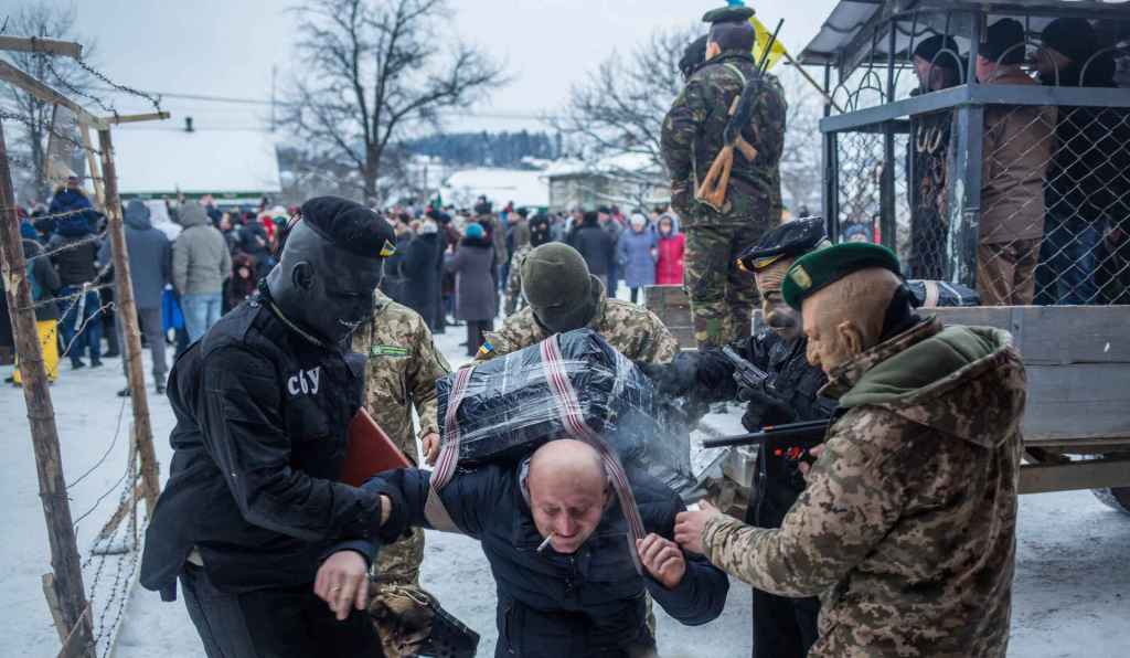 A “bribe” to get into the village is voluntary. When a local woman approaches and tries to get past the checkpoint, they demand five UAH from her, and when she refuses to pay they send her back. All the people that paid get a “ticket” that lets them go through this checkpoint.