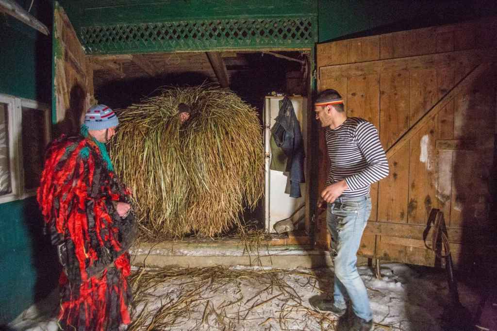 This is a widespread scenario of the New Year’s performance but there are other variations. For instance, the masks craftsman Ivan and his team perform a masquerade. All team members wear different masks of village people and act out arable traditions.