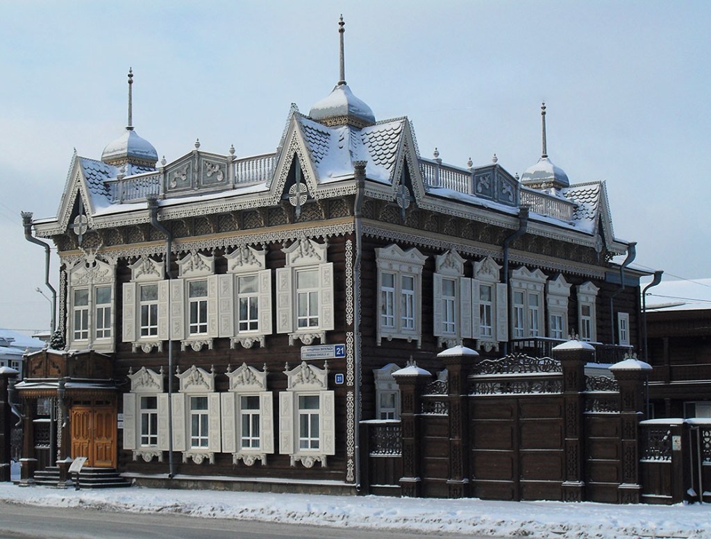This two-story wooden house located in Irkutsk is also known as ‘The Lacy House’ for the lavish decorations of its exterior. The house was built in the middle of the 19th century for the Shastin merchant family. Today, Shastin House is one of the main architectural landmarks in Irkutsk. Reconstructed in 1999, the house is now a hotel. ~ NIKOLAY SHEVCHENKO, Source