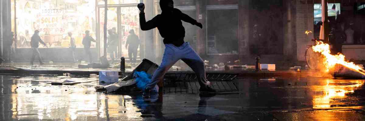 The crowd had already caused several incidents during the event. They threw projectiles at the police and police station and damaged two police vehicles. At around 5:30 pm, a group of about 100 protesters lingered in the area, causing various incidents and damage.