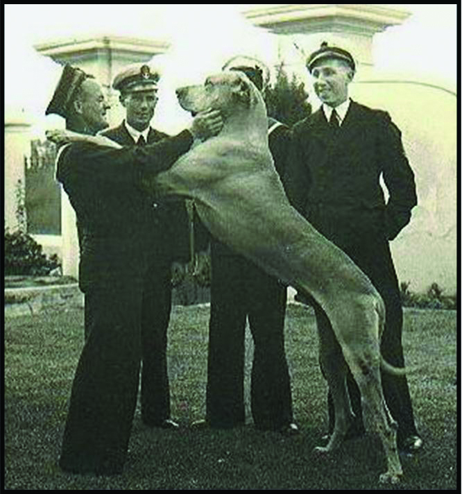 Naturally, the dog in turn became very fond of sailors, all sailors and followed them everywhere, to the naval base, the dockyards and even on to the ships. He was not a small dog; he was large even for a Great Dane. The canine made a habit of lounging about at the top of the gangplank, he blocked the gateway to the vessel and this earned him the nickname, Nuisance.