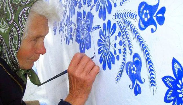 Anežka (Agnes) Kašpárková, a former agricultural worker, picked up the wall decoration hobby from another local woman who had been doing the same for years. Using vibrant blue paint and a small brush, she creates intricate floral wall murals inspired by traditional Moravian (southern Czech) artwork. Despite attaining both local and viral acclaim, she has insisted that her house painting hobby purely for pleasure. “I am an artist,” she stated to Czech media. “I just enjoy wall painting, and I want to help.”