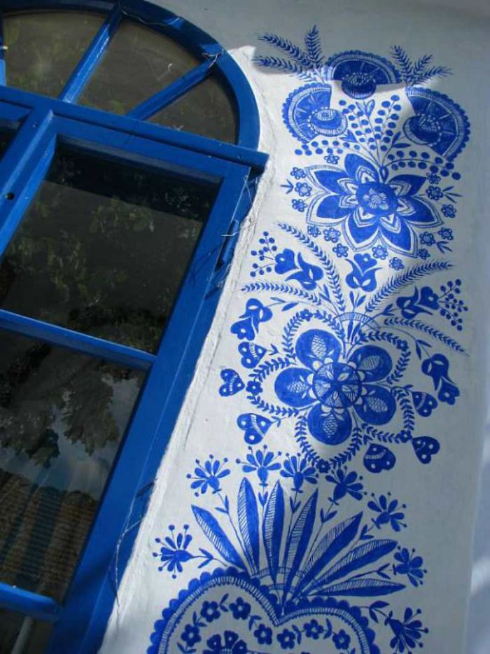 Remember the little Polish village where every house is covered with painted flowers? Well, one 90-year-old resident of Louka, Czech Republic, is aiming to make her hometown just as charming and spends every spring and summer adorning window and door frames with majestic blue flower designs.