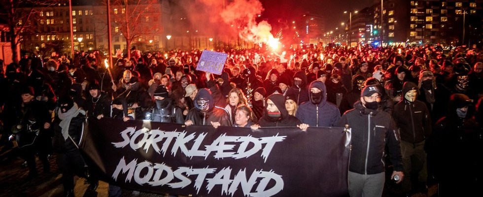 Enormous gatherings, almost unprecedented in Denmark’s political history of black-clad protesters have taken to the streets, launching fireworks, torching an effigy of Prime Minister Mette Frederiksen, and clashing with state police.
