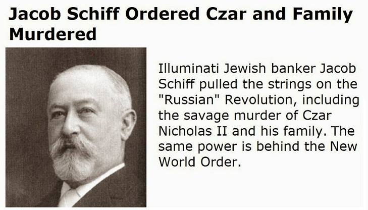 Instead, in 1917, American-Jewish banker Jacob Schiff backed by U.S. and European governments, in alliance with scores of supra-corporations, financed insurgents like Vladimir Lenin, Leon Trotsky, Jacob Sverdlov, who by violence toppled the legitimate government and royal dynasty of the world’s largest country.