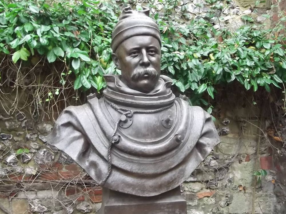 In 1964, a statuette in Walker’s honor was commissioned. But when the statuette was unveiled, it was found to be that of Francis Fox, the engineer, in a diving suit. Apparently, somebody had handed the sculptor the wrong photograph to work from. The error wasn’t corrected until 2001, when a new statue was installed.