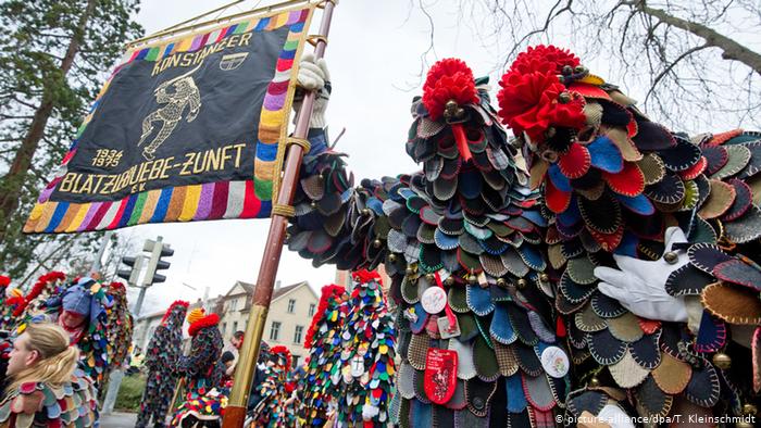 Like Rottweil the town of Constance on the shores of Lake Constance is small, but big when it comes to celebrating Swabian-Alemannic Fasnet carnival. Parades are dominated by the “Blätzlebuebe”, the name given to the guild members who dress in “Häs” costumes made of thousands of bits of material and felt. With their costumes they want to represent a colorful cockerel.
