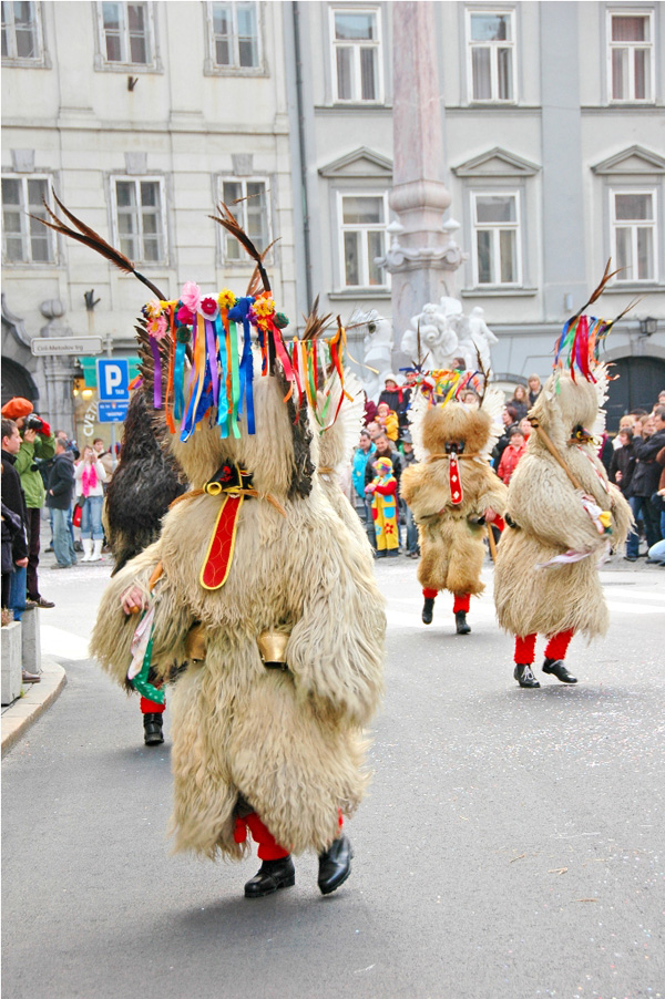 The weekend of Shrove Sunday is the main event. One thing you must do is head out to some of the villages surrounding Ptuj, since several have their own parades. You’ll see the traditional characters like the rusa (reminiscent of a pantomime horse), the pokači (males who snap big long whips), the cockerels (who will make your chickens productive!), fairies, and, perhaps not so politically correct these days, gypsies. It’s fun, funny, and (for the ethnographically minded), an incredible display of colorful customs and traditions. A particularly charming aspect of these village parades is that many locals set up little tables in front of their houses where you can try their homemade schnapps, sausages, marmalades, and all sorts of other goodies.
