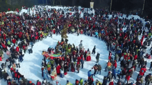 The last day of Cheesefare Week is called “Forgiveness Sunday” (Прощёное Воскресенье). Relatives and friends ask each other for forgiveness and might offer them small presents. As the culmination of the celebration people gather to “strip Lady Maslenitsa of her finery” and burn her in a bonfire. Left-over pancakes may also be thrown into the fire and Lady Maslenitsa’s ashes are buried in the snow to “fertilize the crops”.