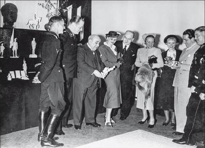 Included are the Wagner-like stage-like productions inspired by Benno von Arent. The mastermind behind the extravagant Swastika-adorned National Socialist public decorations, regalia and theatrical displays.