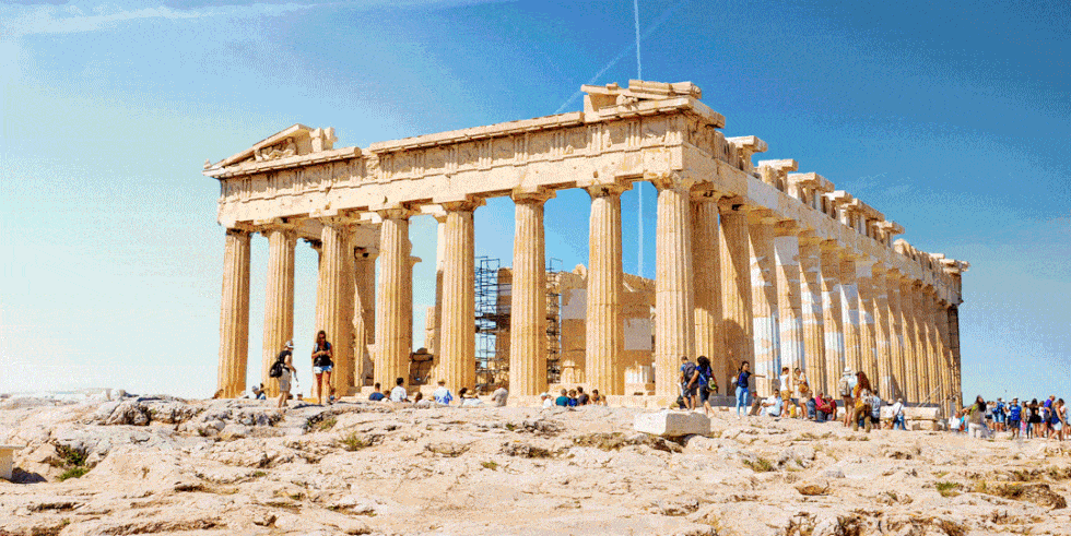 While parts of the Doric architecture remain, the GIF reveals the structure in its full Greek grandeur.
