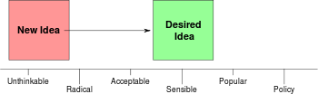 According to Lehman, the concept is just a description of how ideas work, not advocacy of extreme policy proposals. In an interview with The New York Times, he said, “It just explains how ideas come in and out of fashion, the same way that gravity explains why something falls to the earth. I can use gravity to drop an anvil on your head, but that would be wrong. I could also use gravity to throw you a life preserver; that would be good.” But since its incorporation in political discourse, others have used the concept of shifting the window to promote ideas outside it, with the intention of making fringe ideas more acceptable.The “door-in-the-face” technique of persuasion is similar.
