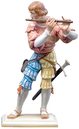 №155 Flötenspieler Landsknecht / Flute player (around 1500 from the time of Emperor Karl V), painted and introduced in 1943, height 23.2 cm.