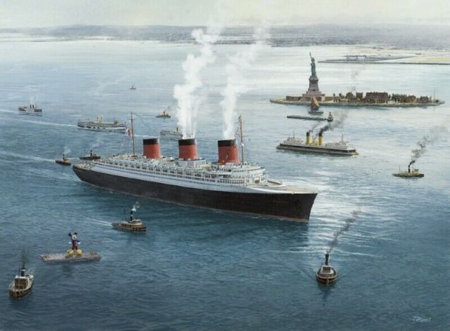 The SS Normandie was far more impressive than the Cunard Liners RMS Queen Mary and Queen Elizabeth.  Passengers flocked to it and the great liner attracted the celebrities of the day. She was a true definition of chic afloat.