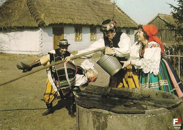 The person who got soaked the most was thought of as being the most popular or attractive. This part of the custom was also connected to the old Slavic rites in which the water was becoming a factor evoking the fertility (similarly to the pouring of water during Kupala Night). The processions were usually going doors-to-doors, often accompanied by traditional songs or verse declarations.
