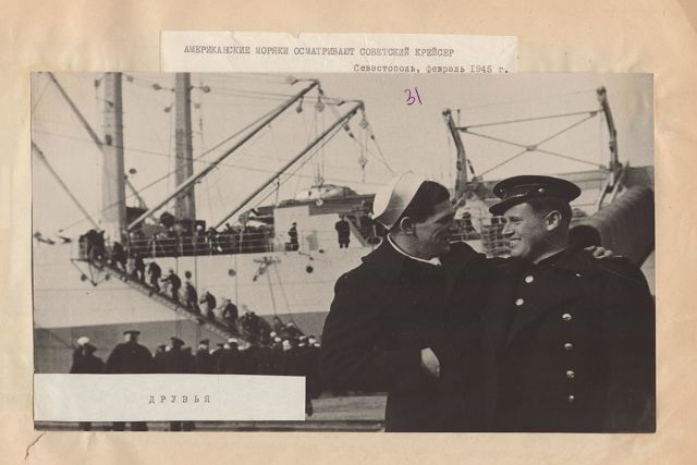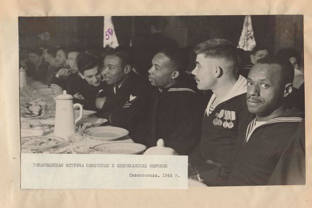 One particularly interesting snapshot shows a dinner at the Fleet House in Sevastopol, with several Afro-American sailors seated next to their Soviet colleagues. This was a one-off oddity as unlike the armed forces of the Third Reich, American servicemen were segregated. These images would not have been shown to American or British readers.