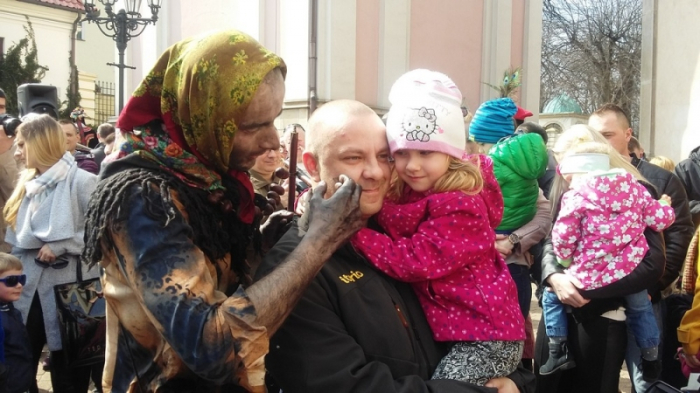 The most important element of the spring caroling rites is the custom of pouring water on people, what in the old days symbolized washing out the remnants of winter, illness, darkness and demons from one’s body after the grim winter, and more impotantly to boost the fertility and health for the upcoming seasons of spring and summer (what survived across Poland as the common tradition of Śmigus Dyngus).
