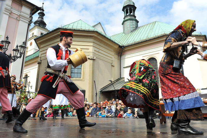 Siuda Baba is a unique element of the spring caroling custom, known only around Wieliczka. The locals believe that being touched by her will bring luck for the upcoming year. Source