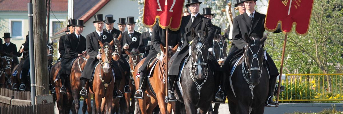 On Easter Sunday , the Catholic men riding a parish in frock coat and cylinder on festively decorated horses in the neighboring community to this to proclaim the good news that Jesus Christ rose again. It is customary for the visited church to make a return visit. Each procession, which can consist of up to 450 riders and horses, is traditionally not allowed to cross the other. In addition, the processional routes are deliberately laid out so that it is possible to proclaim the message in as many places as possible. The standard bearers, the bearers of the Christ statue and the cross ride ahead.