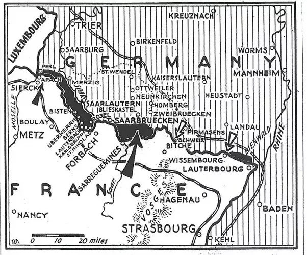 After penetrating German territories the French formations came into artillery distance of the Siegfried Line. For the French things went from bad to worse. The German defensive wall built to deter French and British aggression was impregnable. Despite their superior firepower the French guns failed to penetrate the German defences.