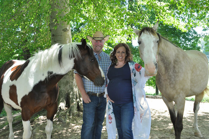 Recently, preggers Amanda Eckstein and Phillip Werner from the USA organised a photo session in honour of their imminent addition to the family. They brought several of their horses so that the animals stood beautifully in the background. However, the horse named Bakshot was clearly not pleased about playing second fiddle in the orchestration.