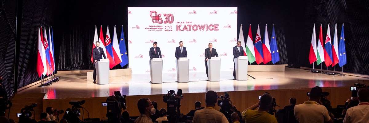 Title image: Visegrád Four Prime Ministers at the group’s presidency handover in Katowice, Poland on Jun 30, 2021. (MTI/Zoltán Fischer)