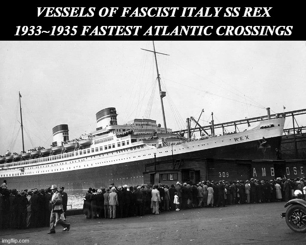She was Italy’s one and only Blue Ribband champion. The renowned Blue Riband was coveted by the great shipping companies of history being awarded for passenger-carrying liners making the fastest crossings of the Atlantic Ocean.