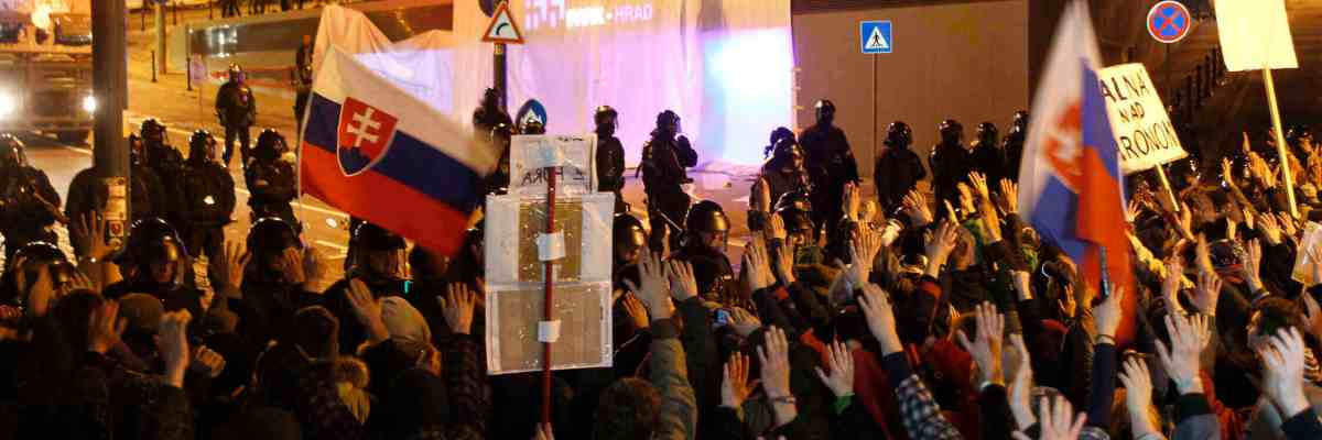 Title image: Slovak policemen block off protesters during a demonstration near the Parliament building in Bratislava, Slovakia, Friday, March 9, 2012. Hundreds of Slovaks protested in the capital to demand that top politicians accused of corruption step down. Slovakia is holding an early general election on Saturday, March 10, 2012. (AP Photo/Petr David Josek)