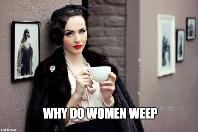 WHY DO WOMEN WEEP She wept again this afternoon, I've no idea why, A woman who seems happy, So often needs to cry, There seems to be no reason, Her eyes should fill with tears, Perhaps she's looking back at life, Or dreads the coming years? Her inner peace was broken, It fell with every tear, Perhaps it was unspoken loss, Of something she held dear, Fate is on a mission, A straight road to the end, Will she will weep again tonight, For roads she cannot bend. Why women weep eludes me, No reason needs there be, To ask her why her breaking heart, Release her tears so free. Poignant are my thoughts tonight, Those women know no peace, Her soul is everlasting whilst, Her life on earth must cease. She cries that she's the mother, The queen of all but Fate, Creating love and life's her role, But ticking-time won't wait, The clock hands show no pity, Her realm will meet its end, She weeps for what is hers by right, And what she can't defend. Michael Walsh Poetry https://mikewalshwritingservices.wordpress.com/writing-services/fees-at-a-glance/