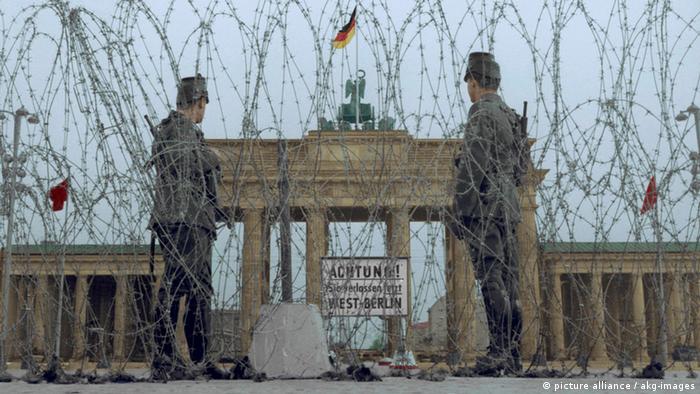 Barbed wire barriers at the Brandenburg Gate were replaced by the Berlin Wall in 1961